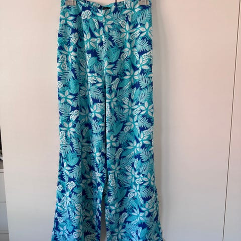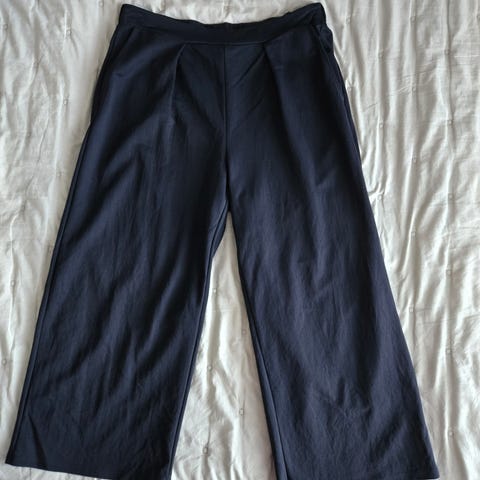 Leveälahkeiset/ väljät kauniin tumman viuninpunaiset ( kamera muuttaa väriä ) housut. Käyttämättömät. 80% puuvillaa, roikkuva pehmeä kangas. Vyötärö kuminauhalla 70 > 90cm. Voin lähettää kulut ostajalle.