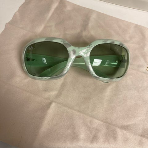 Raybanin hyväkuntoiset aurinkolasit, ei naarmuja tai muutakaan mainittavaa 💗 Väri vihreä ja kulta, linssin leveys 5cm. Mukana tulee kuvassa näkyvät tavarat.