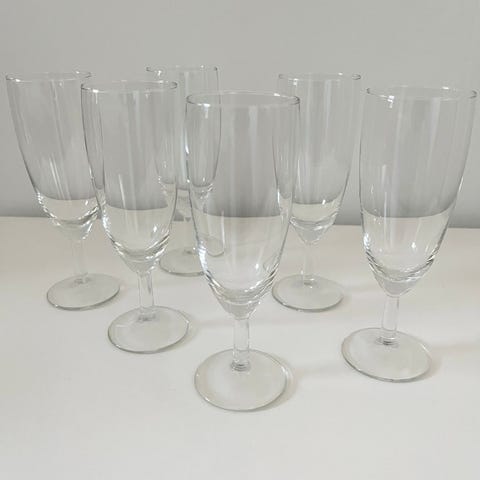 Myydään 6 kappaletta ehjiä ihan perus kuohuviinilaseja.