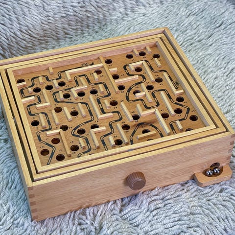 Puinen dominopeli, jossa värikkäät eläinkuvat. Peli sisältää puisia dominolaattoja ja puisen säilytyslaatikon liukukannella.