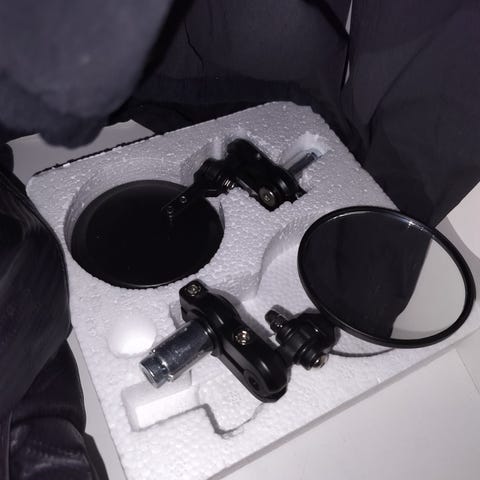 Mopon peilit, väri musta. Pyöreät peilit varrella, sopivat yleiskäyttöön moottoripyöriin tai mopoihin, joissa on yhteensopiva kiinnitys. Useita kappaleita samantyyppisiä peilejä. Materiaalina metalli ja muovi, peilipinta lasia.