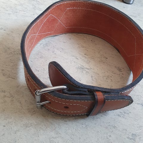 Vyön pituus on 110cm ja leveys on 6/10cm. Ulkopinta on nahkaa ja sisäpinta on pehmeämpää materiaalia.