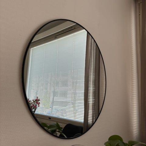 Myydään painava musta ruukukko peili, peili saanut vähä osumaa minkä takia parissa kohtaa on kolhua, ei mitään suurempaa halkeamaa.