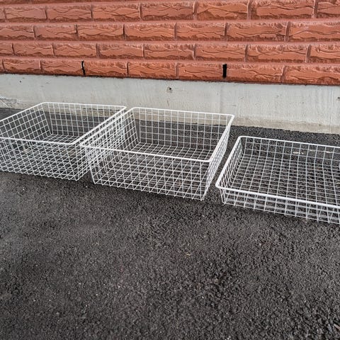 Ylöjärven Vuorentaustassa myydään kaksi Elfan lankakoria. Siistit, mutta normaaleja jälkiä kiskoissa kulkevien osien maalipinnoissa.