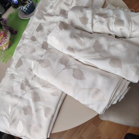 2 kpl tosi kauniita verhoja Pit.2.54cm ja lev.1.40 cm.
