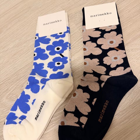 Myynnissä kaksi paria aitoja ja uusia Happy Socks -sukkia.