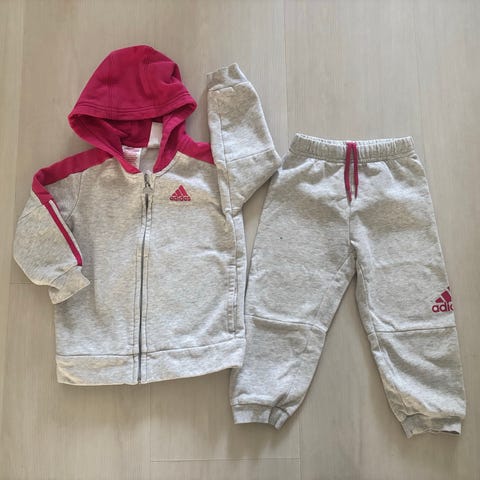 Adidaksen collegeasu kokoa 92. Vaaleanpunaisen ja vadelmanpunaisen sävyisenä.