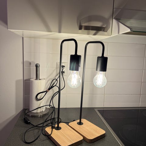 Kaksi Ikean pöytälamppua, myydään yhdessä tai erikseen 10 eur/kpl. Korkeus 55 cm