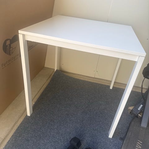 IKEAn valkoinen ruokapöytä metallijaloilla.