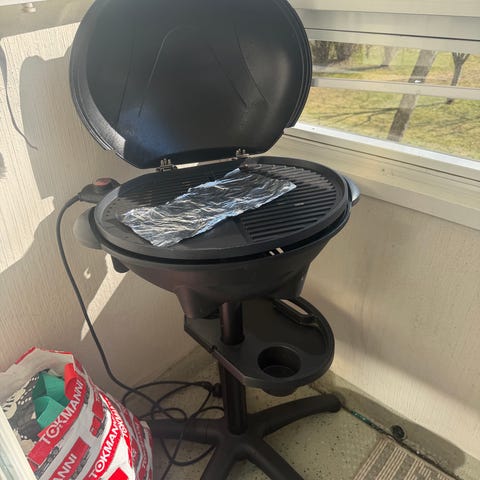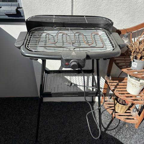 Muutaman kerran käytetty sähkögrilli. Testattu, että toimii. Ostettu noin 5 vuotta sitten. Säilytetty lasitetulla parvekkeella ja myöhemmin pihavarastossa. Vain nouto.