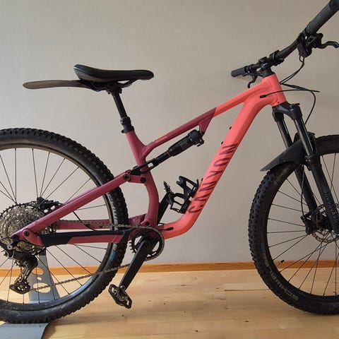 Juuri huollettu täysjousitettu Canyon maastopyörä, rungon koko XL ja 27.5" kiekot.