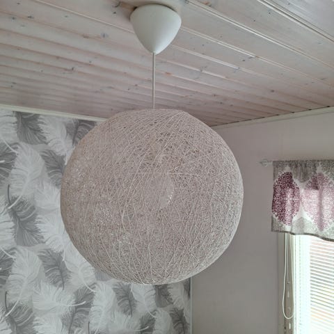 Myydään hyväkuntoinen beige paperinaruvalaisin halkaisijaltaan n. 40 cm. Johto n. 40 cm, mutta ripustussarjan voi vaihtaa. Lamppu E27.