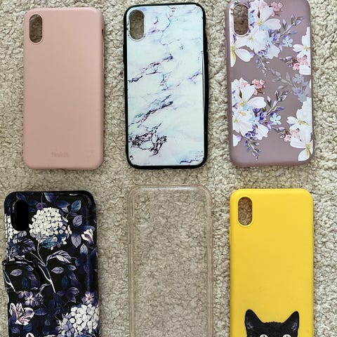 Siistikuntoinen ehjä puhelimen suojakuori pitkällä remmillä.