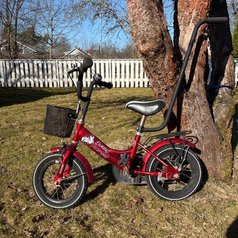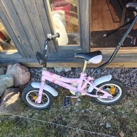 Tyttöjen pieni pyörä. Ei tietoa, pysyykö ilma renkaissa ja takapyörä laahaa. Tästä korjaustaitoiselle tai varaosiksi.