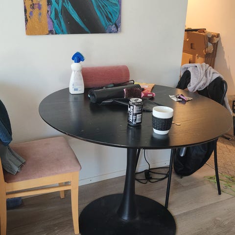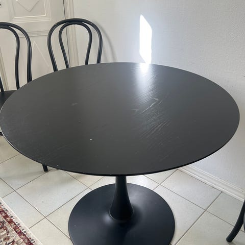 Myydään kuvanmukainen ruokapöytä, siistissä kunnossa mutta pöydän kansi rikki. Pidetty päällä maljakkoa, ei haittaa käyttöä.