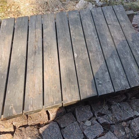 Tukeva kestopuinen terassinpätkä pienelle pihalle tai kulkureitiksi.