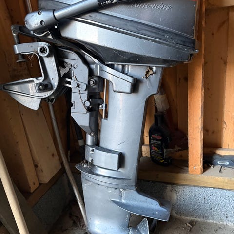VIRE 12 keskimoottori ja varmuusvarana 5 HP Mariner perämoottori pitkällä rikillä, molemmat toimivia.