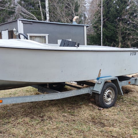 Lasikuituinen 1970-luvun uppoumarunkoinen matka-/retkivene, jossa toimivat sisätilat: mm. seisomakorkuinen takahytti, avattava+irroitettava kattoikkuna, ja yöpymistila keulassa.