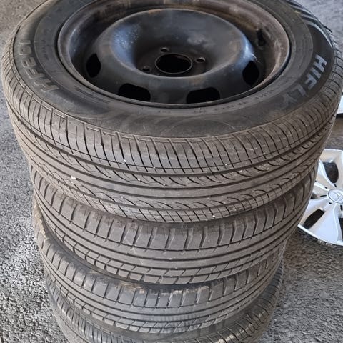 Kaksi asiallisessa kunnossa olevaa Citroën C5:n alkuperäistä vannetta, päällä loppuunajetut kesäkumit.
