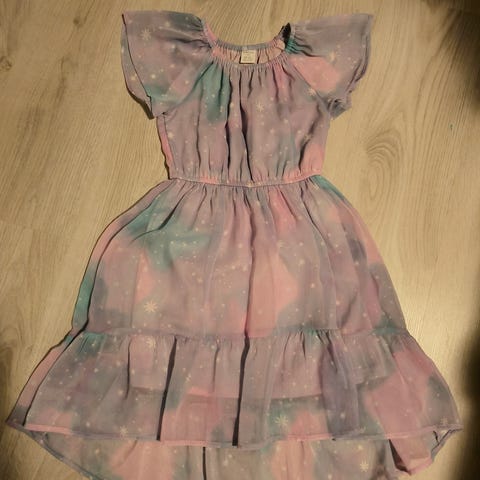 Lindex lasten mekko tytöille, koko 110. Hihaton punainen juhlamekko, jossa yläosassa ja helmassa paljettikoristelu. Materiaali polyesteriä, useampi kerros tuo helmaan runsautta. Takana vetoketju pukemisen helpottamiseksi. Sopii esimerkiksi juhla- tai esiintymisasuksi.