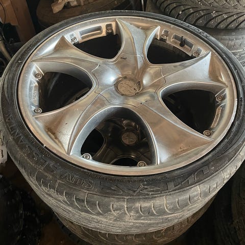 Kuvan jykevät 20" vanteet ML Mersuun, päällä nastarenkaat, joilla vielä ajaa, muttei mitkään uudet enään. Vanteet pääasiassa kaupan, tämmösiä harvoin tarjolla