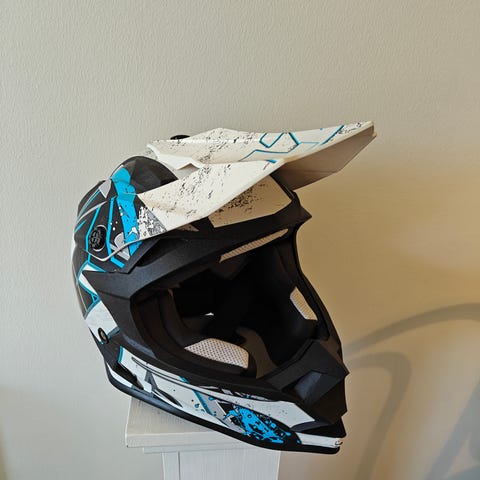Lazer Freedom crossikypärä, koko L. Väri on musta-valkoinen graafisilla kuvioilla. Kypärässä on pitkä lippa ja leukasuoja, jotka soveltuvat maasto- ja offroad-ajoon. Sisäosat ovat pehmustetut ja ne on suunniteltu tarjoamaan tukea ja istuvuutta. Kypärän mukana on valkoiset ajolasit, jotka suojaavat silmiä pölyltä ja roiskeilta. Soveltuu moottoripyörä- tai motocross-käyttöön käyttäjän koon mukaan.