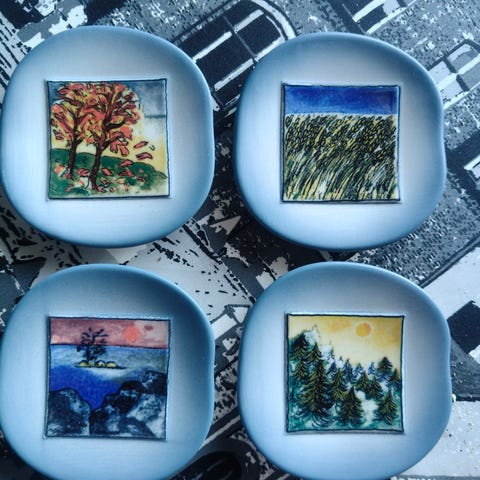 Arabia lautanen, sinivalkoinen maisemakuvio. Lautasen halkaisija 17,5cm.