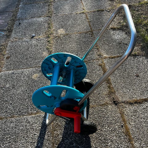 Muutaman vuoden vähällä käytöllä ollut letkuvaunu tarvikkeineen, muuton alta pois. Letkua n. 12 m.