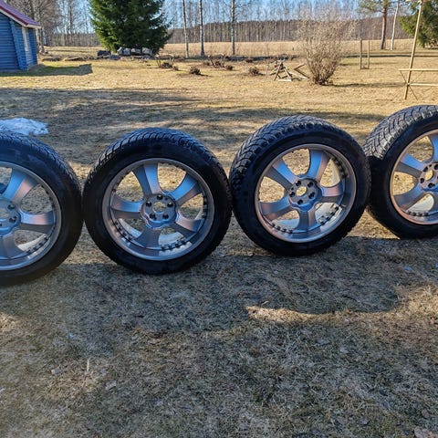 Kuvan 18" Mersun vanteet, yks vanne reunasta halkeama korjattu ammattilaisen toimesta, ja on alkuperäisen kuntonen. Ässä Mersussa olleet. Renkailla ei enään tee mitään, mutta vanteet on hyvät.