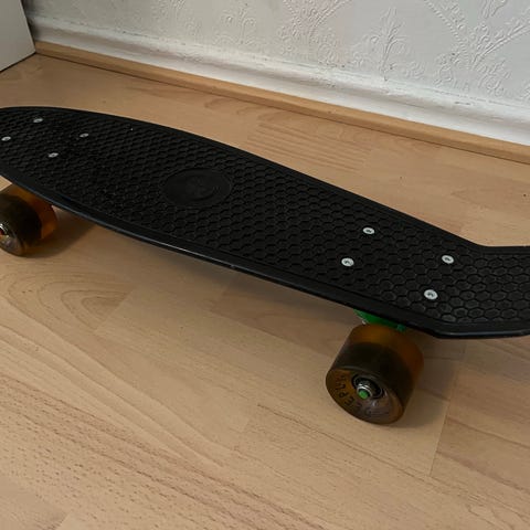 Muovinen mini-cruiser skeittilauta. Laudassa on keltainen, kuvioitu muovidekki ja keltaiset renkaat. Pieni koko sopii hyvin lyhyille matkoille ja kaupunkiajoon. Soveltuu nuorille ja aikuisille käyttäjän painorajan puitteissa.
