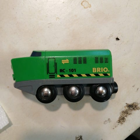 Brio iso vihreä paristoveturi, liikkuu eteen ja taaksepäin sekä äänet kuuluu. vain nouto.
