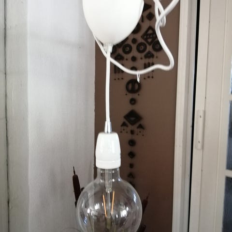 Harmaa lasipallo kattovalaisin. Saksalainen. Muutama kerta kokeiltu.