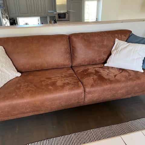 Myydään konjakin värinen Scandic Copenhagen 3-istuttava sohva. Sohva liian pieni meille ja siksi myynnissä. 2-vuotta vanha sohva. Sama sohva maksaa Vekellä 899€.