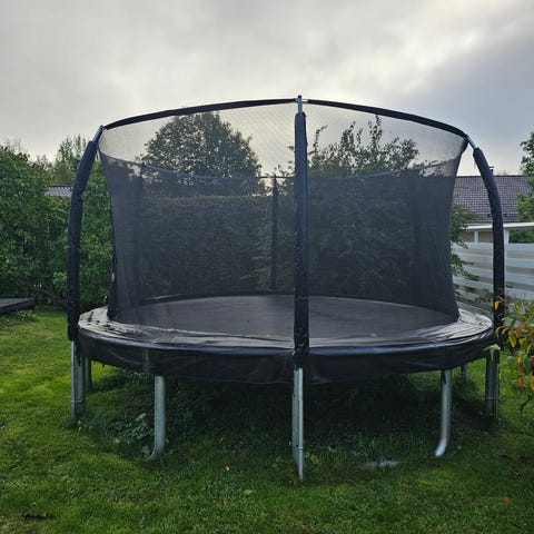 Trampoliinin runko ja turvaverkko putket. Verkot hävitetty. Jos tarvetta hae pois. Halkaisija muistaakseen 403cm.