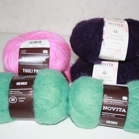 Novita Tuuli mohairlanka. Oranssi väri. 4 kerää. Yhdestä otettu pieni pätkä.