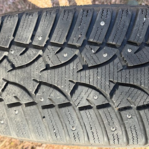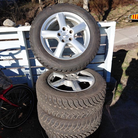 Michelin X-Ice North nastarenkaat Mersun (C180) vanteilla. Renkaat olivat yhden talven käytössä ja ovat sen jälkeen seisoneet muutaman vuoden.