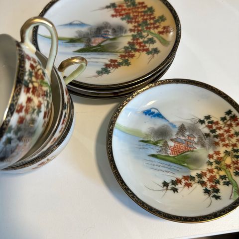 Walbrzych made in Poland -astiasto. Keräilty eri aikakausilta saman merkin astiastoa. 10kpl kuppeja, aluslautasia ja jälkiruokalautasia. Lisäksi 1 kannu ja 3 tarjoilulautasta, joista 1 hieman suurempi. Pienet puutteet kahdessa mukissa, jotka näkyvät kahdessa viimesimmässä kuvassa. Muuten erittäin hyvässä kunnossa.