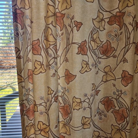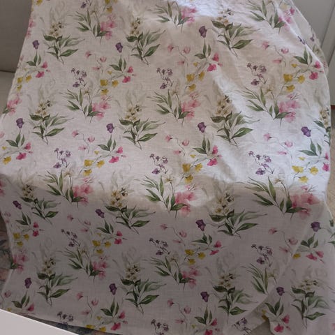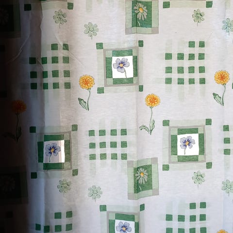 Ihanat keväiset verhot. Leveys noin 139cm ja korkeus noin 201cm. Kunto mielestäni oikein hyvä. Yläkäännös verhossa on noin 5cm (tankokuja) ja alakäännös noin 15cm. Hp 35 euroa plus postikulut 8.80 euroa. MMM
