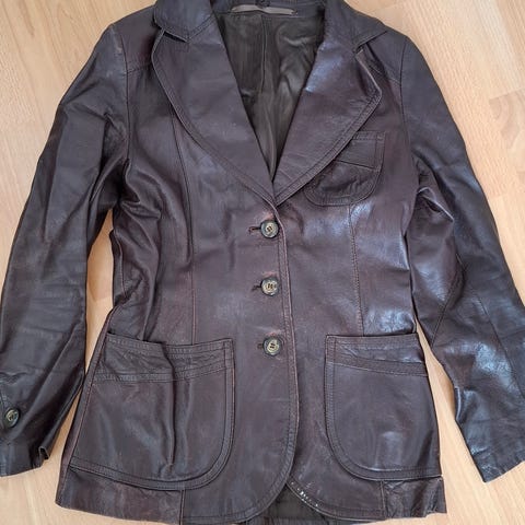 Myydään retroinen, hyväkuntoinen naisten mokkanahkatakki. Koko 38+. Kok.pituus 76cm, hihan pituus 58, hartialinja n.40 ja vyötärö n.94. Hinta 25 euroa.