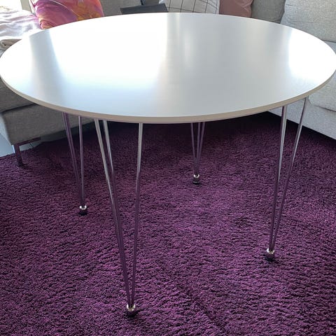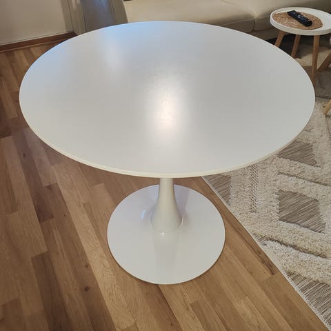 Myydään 105cm pyöreä valkoinen ruokapöytä. Pöytälevyssä hieman tummia kohtia, mutta nämä todennäköisesti lähtee pois. Ovet saa irrotettua.