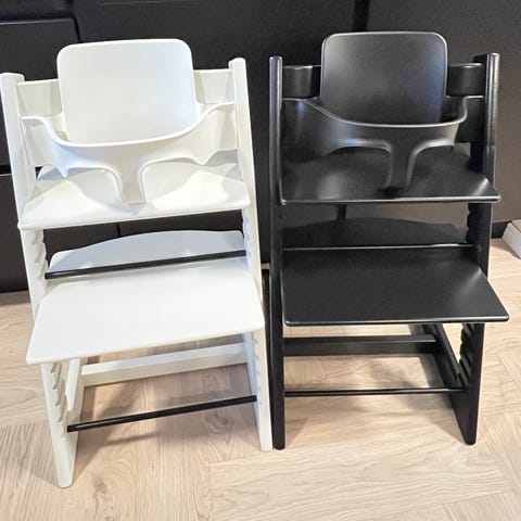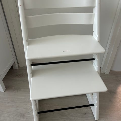 Myyn hyväkuntoisen valkoisen stokke Tripp Trapp tuolin ja oranssin babyset.