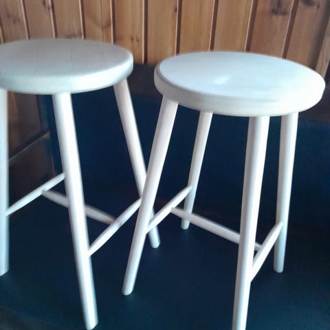 Kaksi sympaattista vanhaa jakkaraa, yöpöytäprojektiksi alkujaan jemmattu. Vaativat liimaa tms. jos istuimeksi kunnostaa.