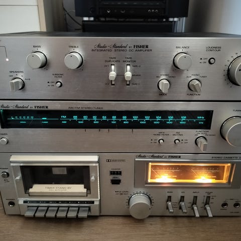 Hyvässä kunnossa oleva levy-kasettisoitin. Merkki Sanyo. Kahdet kauittimet.
