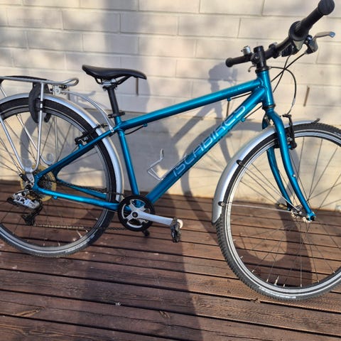 Islabikes Beinn lasten polkupyörä 26" renkailla. Huom pyörässä käsijarrut, ja kunnon vaihteet. Soveltuu lapselle tai nuorelle, joka noin 130-150 cm. Kannattaa tulla kokeilemaan, säädetään satula kohdalleen ja testiajo kertoo onko sopiva. Ainakin 160 cm:n ajamana näyttää hassulta, eli liian pieni.