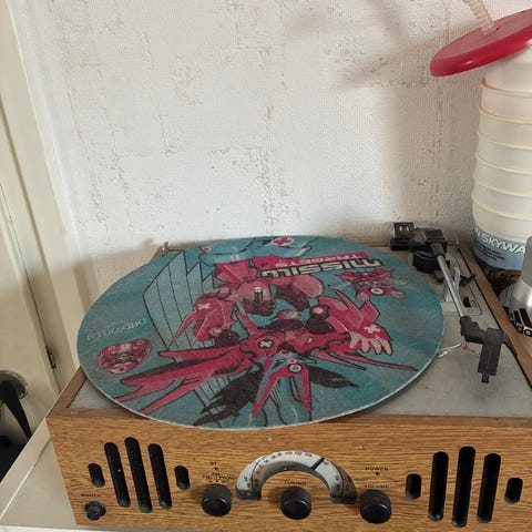 Toimivana vuosia sitten kaappiin laitettu mutta nyt ei levyä millä testata.Virrat tulee ja lautanen pyörii sekä neula paikallaan.