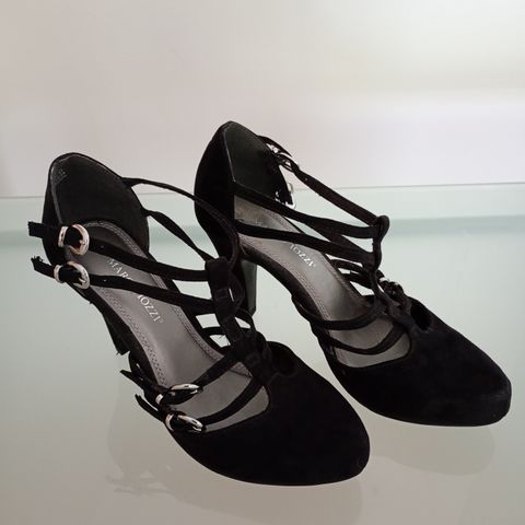Mustat Marco Tozzi korkokengät. Koko 38. Irrotettava pehmeä pohjallinen. Korko 6.5 cm.