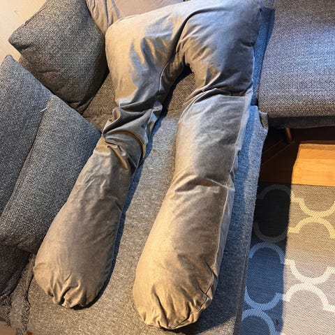 Rusta vartalotyyny. Mukana tulee erillinen päällinen, joka on tummanharmaa. Valkoinen sisätyyny ja päällinen ovat irrotettavia, mikä helpottaa puhdistamista ja huoltamista. Tyyny sekä päällinen hyvässä kunnossa.