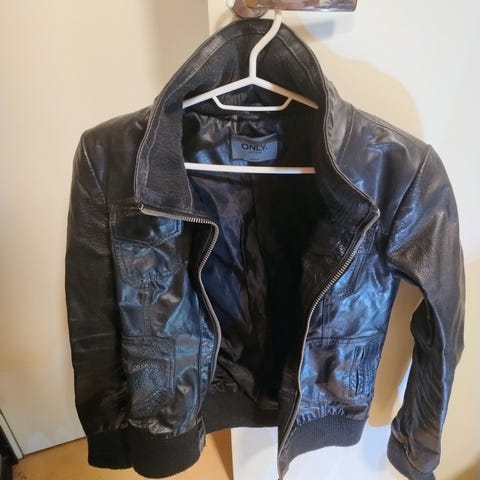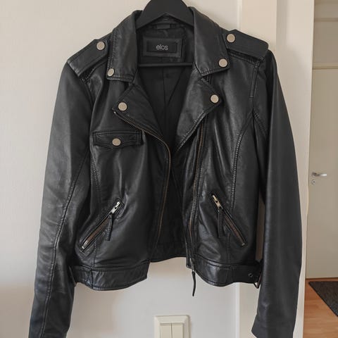 Siisti, vähän käytetty Ellos Fresh Spirit lyhyempi takki aitoa nahkaa. 2 sivutaskua painonapeilla, samanlaiset koristenapit myös pienen pystykauluksen etureunoissa. Satiinivuori. Istuva malli, takana helmassa laskoksia/rypytystä. Patinoituneen hopean väriset napit ja vetskari.