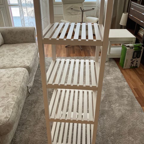 Valkoinen kylpyhuoneen hylly kaapilla