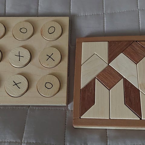 Puutuinen pöytäpeli, jossa on neljä kulmareikää pelinappuloille tai palloille. Peli on neliönmuotoinen ja soveltuu sisäkäyttöön. Mukana tulee pussillinen erivärisiä pelinappuloita tai palloja. Peli sopii ajanviettoon perheen tai ystävien kanssa pöydän ääressä.